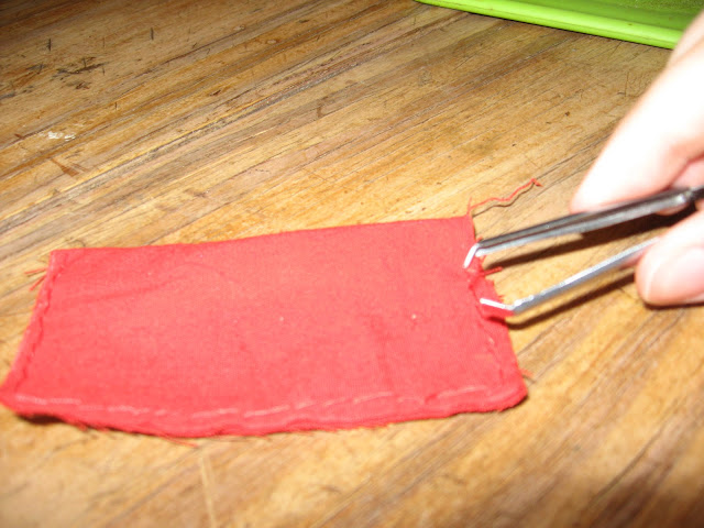 Terceiro passo: Nesse espaço sem costura coloque uma pinça e desvire o tecido.