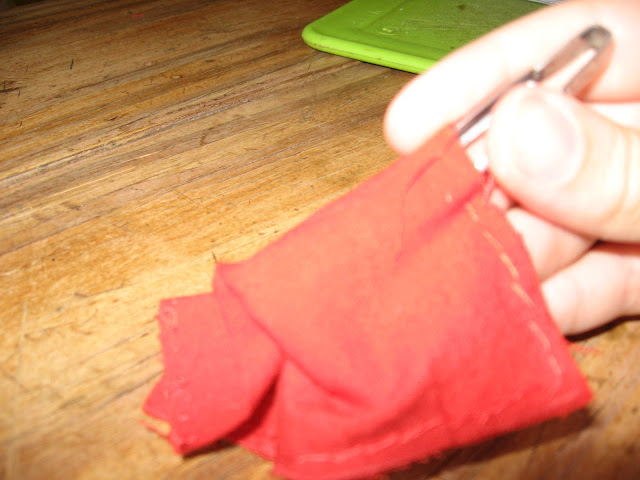 Segundo passo: Costure toda a volta do tecido deixando apenas um espaço sem costura.
