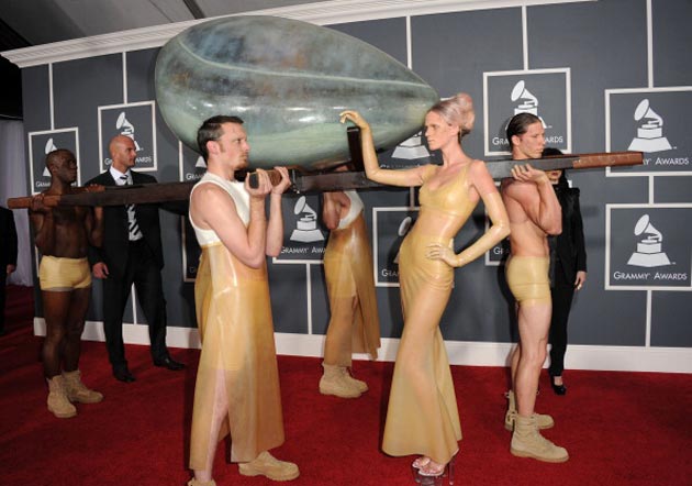 Lady Gaga que chegou em um ovo carregada por 4 bailarinos!